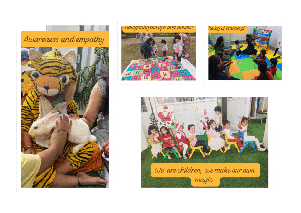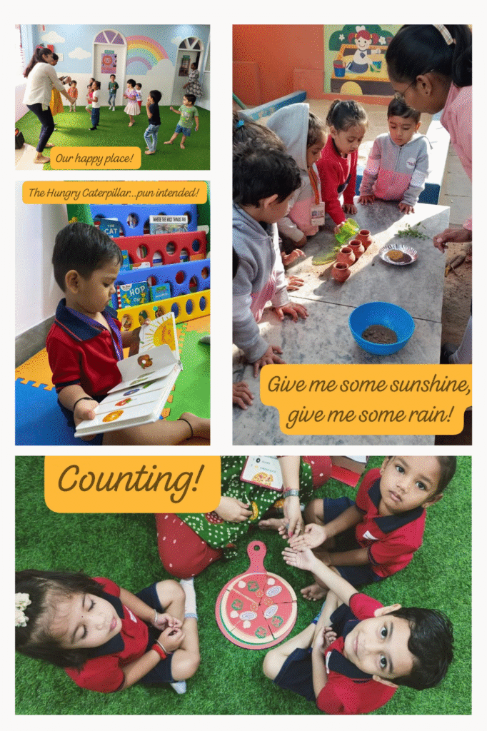 Our schools are a happy space for the holistic development of children from the age of 2 to 6 years. We look beyond giving factual knowledge towards cognitive development that enables understanding and application of knowledge for problem-solving in creative ways. We ensure a joyful learning experience, positive attitude, productive work habits and development of lateral thinking for the later stages of life.