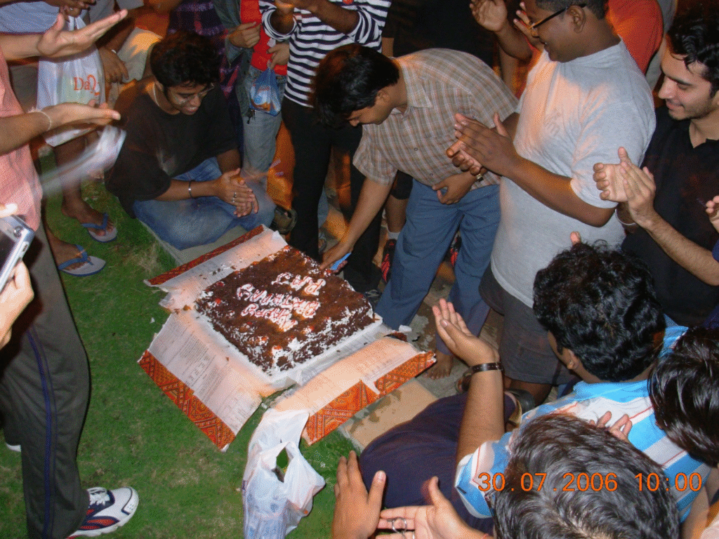 c. Birthday celebration in front of our hostel with a wonderful cake from Bake-n-Shake and lot of noise and action!