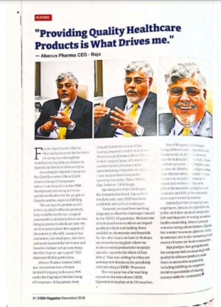 I started in a GIS Sales role in a tech company from campus. In a short while I was convinced that my calling is healthcare. So, when I had the opportunity to come back to healthcare, with Frost & Sullivan, an MNC consulting firm, I took it with both hands. From there I got back to the pharma industry with Torrent, an Indian Pharma Major and was part of the team which charted their entry into the US Market. After a couple of other assignments, I had the opportunity to be part of the leadership team of Abbott, India’s largest Healthcare MNC (revenues of ~$1.5 Billion in India and $43 Billion globally) and to my current role of a CEO of the largest Healthcare firm (Abacus Pharma) in East Africa.