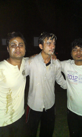Treated with love on my first birthday in IIFM. In this photo with batchmates Brij Miholia (left) and Deepak Kumar ( right)
