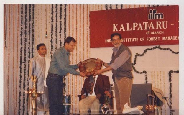 A. As I said, IIFM stay was liberating. It was everything I had hoped for and more – like a 2 year paid vacation in a resort (with a diploma at the end). I played every game I could (some I had never played before). I learnt swimming in a tank made for construction. Bambusa parties were an opportunity to unwind, celebrate and dance till our legs gave in. Newer students would not know, but we(entire batch) got a monthly stipend, enough to make us feel rich and occasionally dine at the best places in Bhopal. Few had bikes, Nishant had an RX 100 (which could miraculously seat 5), Alark had a Yezdi and both were skilled riders. Aiyush and I had less iconic Bajaj scooter and bike. Venturing out at night on these bikes and having scrumptious dinners are some of the cherished memories. Adventures during field visits and OT are etched in my memory – visiting Satpura during monsoon, observing wild life in national parks, living in remotest forest rest houses, bathing in Himalayan streams, tricking Prof. Vijay Kumar and 9 of us stealing out of FRI in a Maruti 800, to see a night show of Raaz. The final Kalpataru was also a memorable occasion. We performed a drama under the guidance of a professional theater artist. With no coursework pressure, I went bonkers and participated in every contest except sports. It’s easy to be a hero among less than 70 people. I won so many prizes that I lost count and secured the Best All-rounder of the Year Shield.
